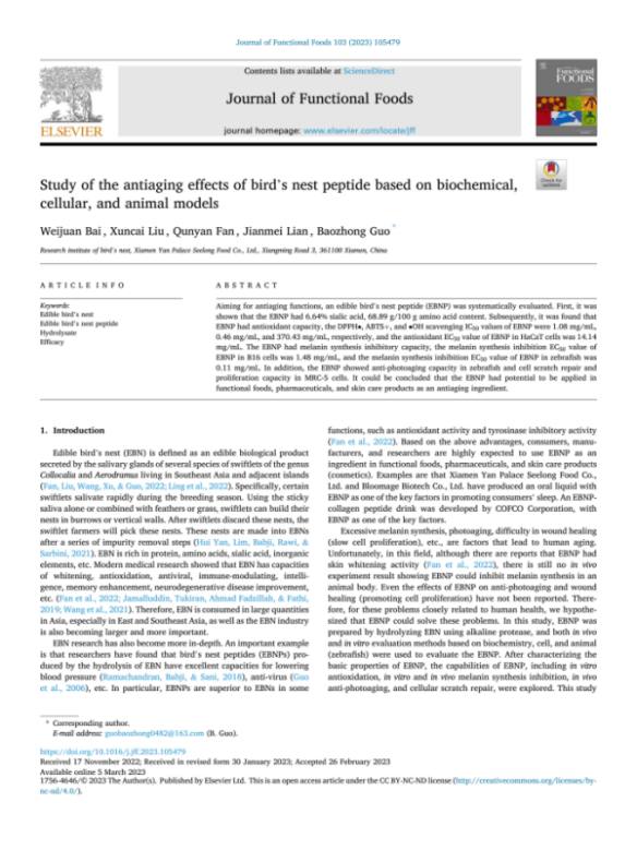 圖:燕之屋燕窩研究院研究論文被國際權(quán)威SCI收錄期刊